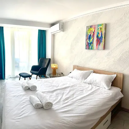 De kamers van de accommodatie in Sunny Beach bieden gasten een flatscreen TV met satellietzenders en gemakken zoals airconditioning. De badkamer is voorzien van een apart toilet en een douche.